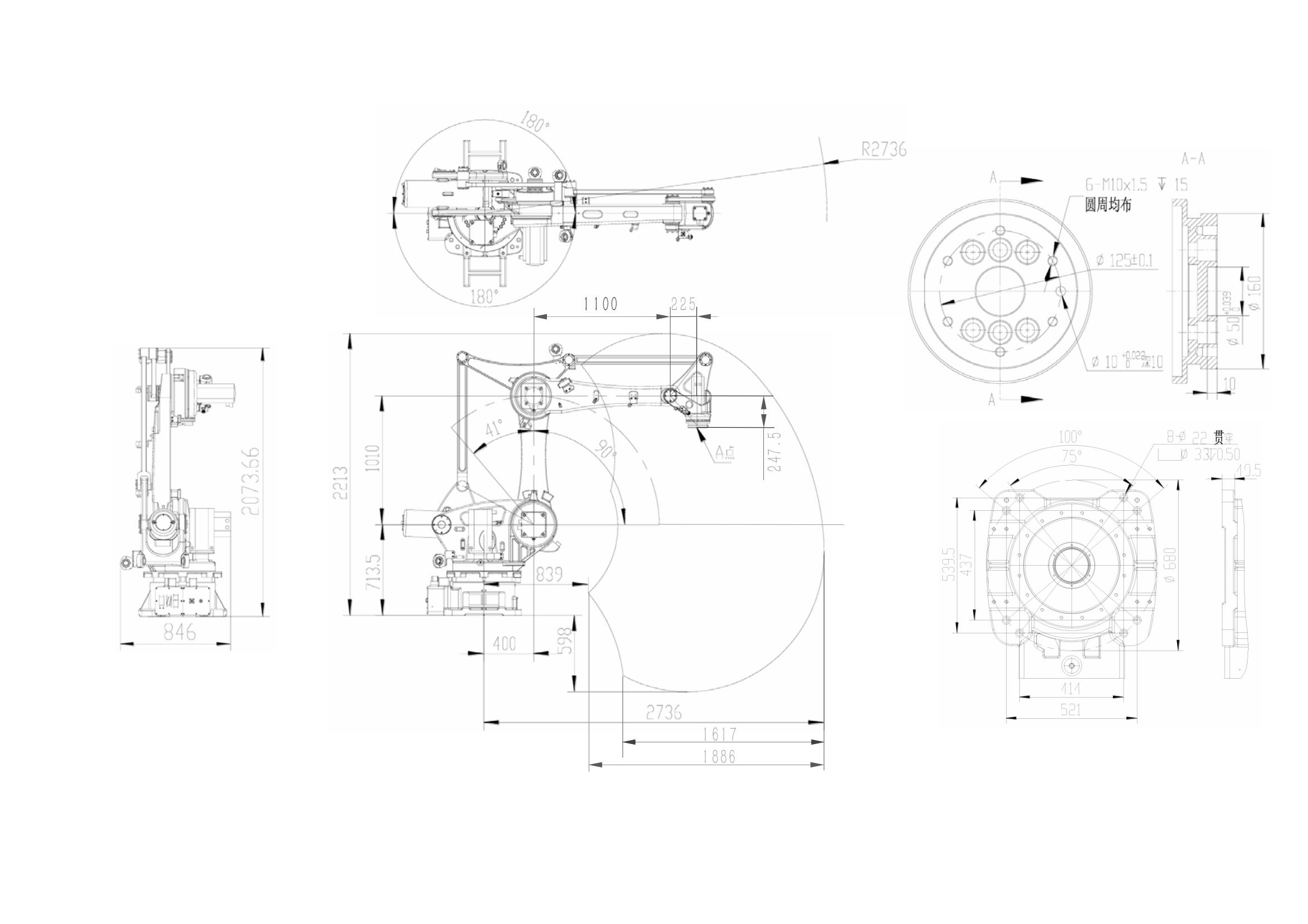 最??程-105°≤J2+J3≤20° 最大速度445°/s